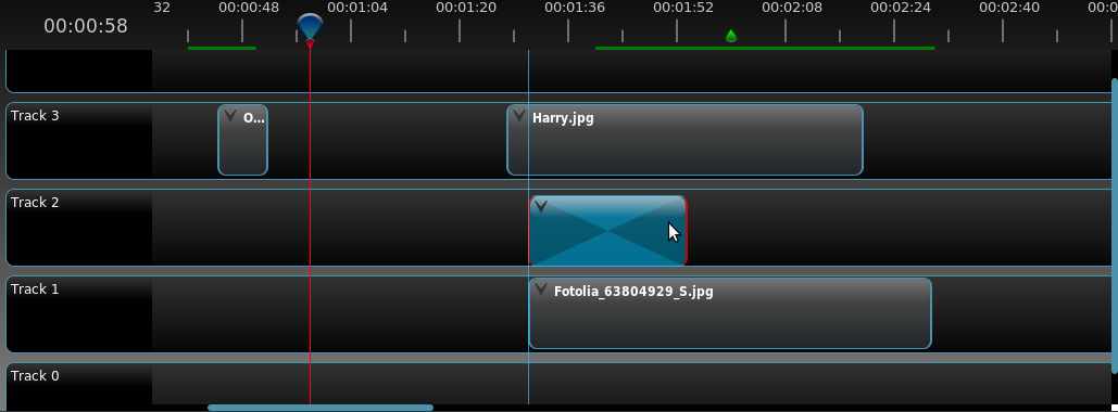 One of the coolest features I've completed over the past many weeks is a brand new snapping engine for the timeline. Basically, every element on the timeline (including the playhead) can be snapped/aligned in real-time, as you drag a clip or transition around. As the clip approaches a "snapping coordinate", a line fades in as a visual cue, and fades out after you drop it or move past it. It certainly makes the timeline easier to use, as aligning clips, transitions, and audio is a very critical part of the average video editing work flow.